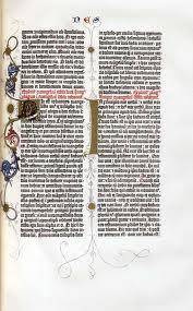 Fotografía: una hoja de la Biblia impresa por Gutenberg. Deutche Museum. München.