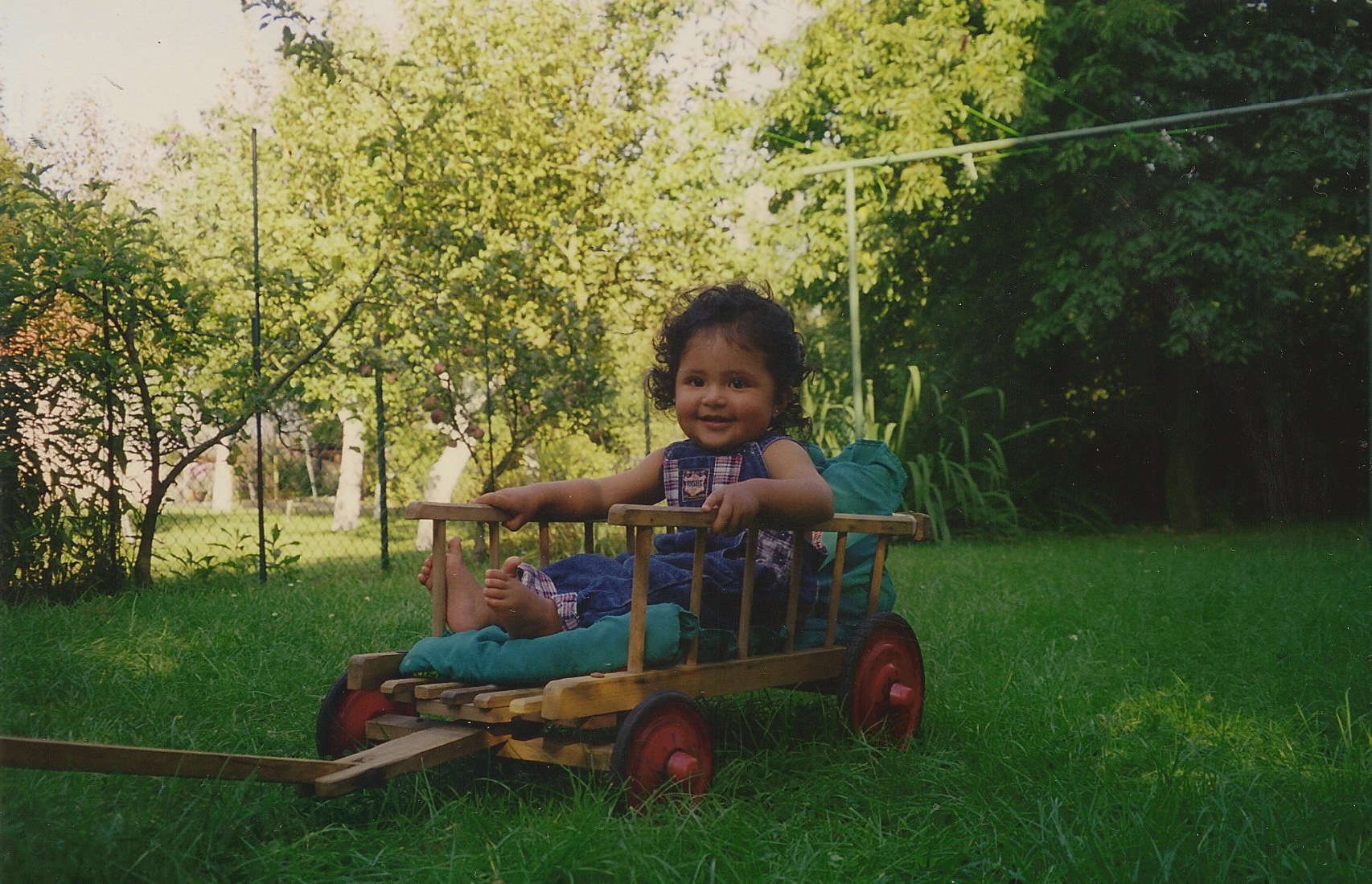 Cuando mi hija tenía como nueve meses, recordé un carrito de madera que había visto en el sótano aquellos primeros días. Lo subí, lo limpié, le puse un colchoncito y senté ahí a mi nena con algunos de sus peluches favoritos. ¡Sus ojos chispeaban de gusto! Ya era verano y por las tardes salíamos con el carrito a dar la vuelta a la manzana.