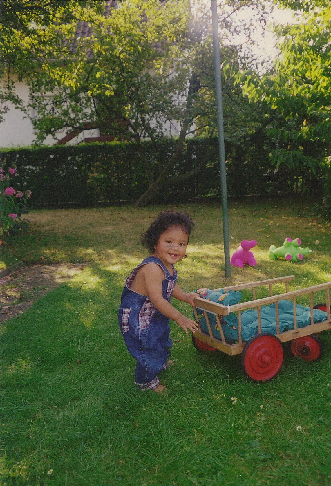 Ella iba creciendo y cuando ya se podía afianzar con sus manitas, le gustaba que le hiciera más rápido cada vez, hasta que yo prácticamente iba corriendo jalando el carrito. ¡Cuánto nos reímos con ese carrito! Cuando finalmente pudo caminar, ella empujaba el carrito.