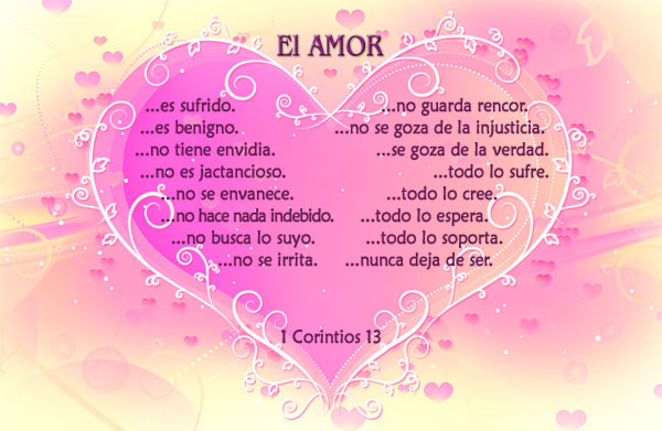 Hay una descripción del amor perfecto en la Biblia, en 1 Corintios 13. Son las características del amor de Dios. Y como humanos anhelamos expresar ese tipo de amor y recibirlo. Lo intentamos y seguramente lograremos sin esfuerzo un amor con algunas de las características y fallaremos en otras. Seamos comprensiv@s al esperar encontrar este tipo de características del amor perfecto en el amor humano. Seguramente cualquier tipo de amor humano tendrá imperfecciones. Saberlo, nos puede hacer mas felices al recibir lo que venga y como venga. Cubramos, también con amor, aquellas faltas.