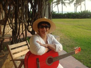 Mi vida es sencilla. Me gusta tocar el piano, cantar con mi guitarra, leer, ver el mar, disfrutar de un buen café, disfruto platicar con mi esposo, ver películas con mis hijas, viajar y escribir.